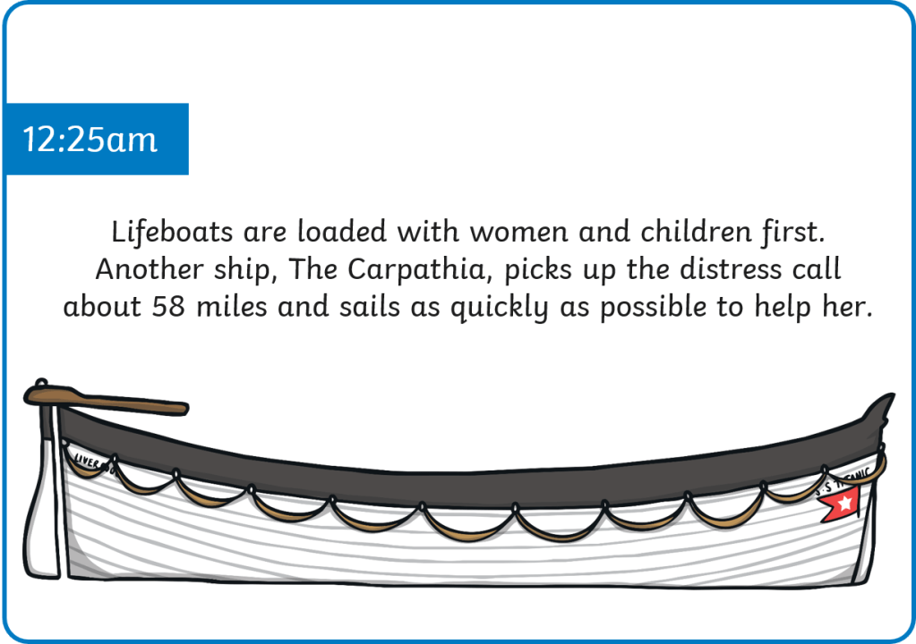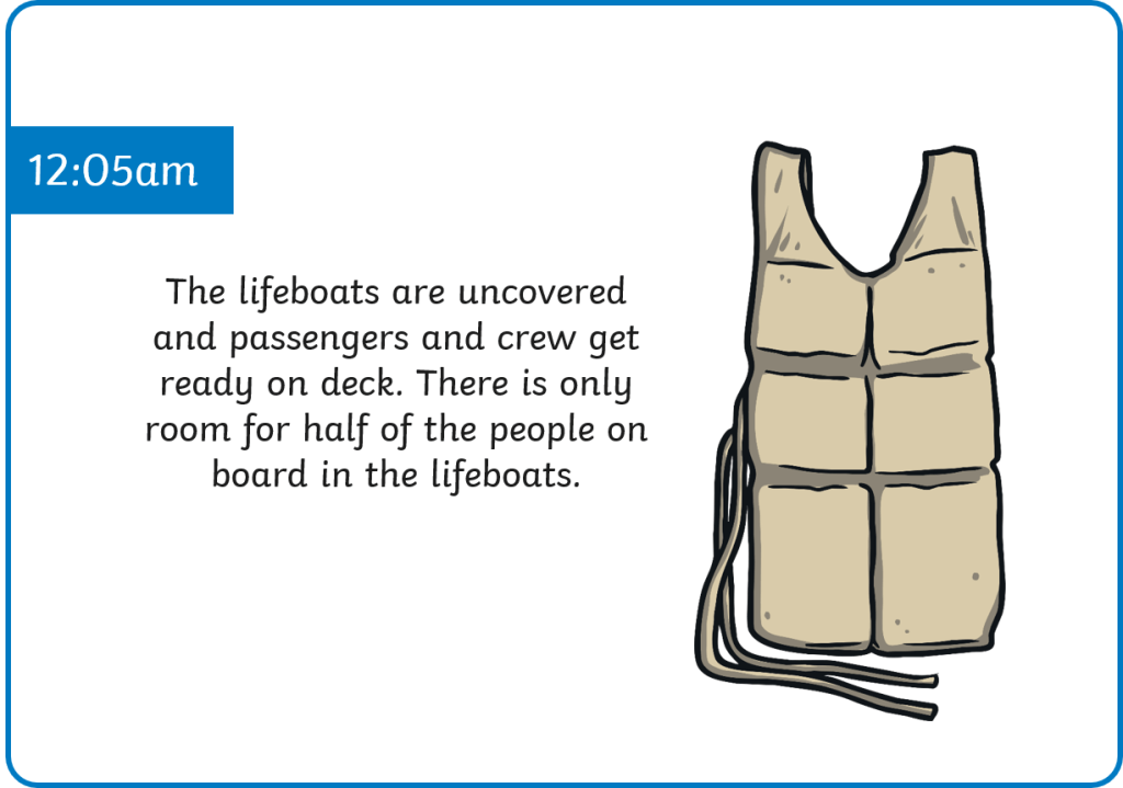 So we carried on with our Twinkl sheets. There was some interesting information about the number of rivets used; about the fact only three of the four funnels were operational, with the fourth added to increase the impression of a powerful ship. Each worksheet was quite circumspect about events and what happened once the ship hit the iceberg. And then we get to this page: