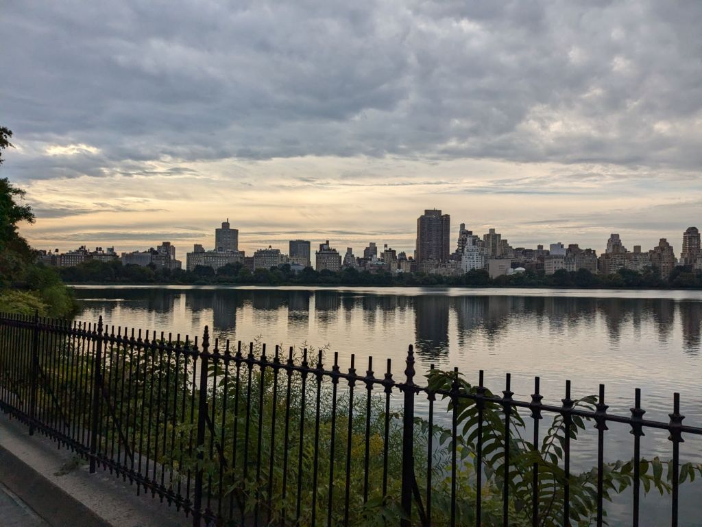 I had decided I would be beating the jet lag by getting up when I woke up, and doing all my work early. So I got up at 5, but the streets were completely deserted, and the sky was full of freshness. I could not miss the opportunity for a loop of Central Park. So I went down the deserted subway, and realised with some surprise that over 10 minutes to wait for a train seems to be a standard service interval for a bank holiday.